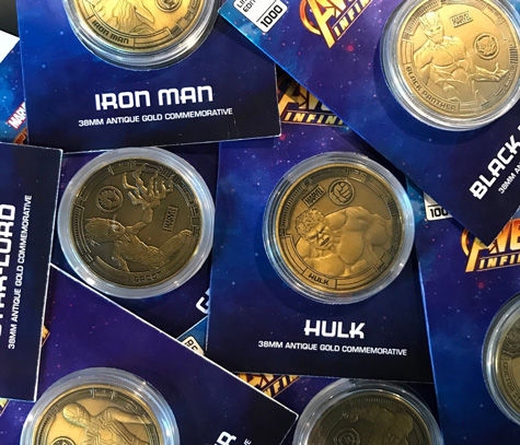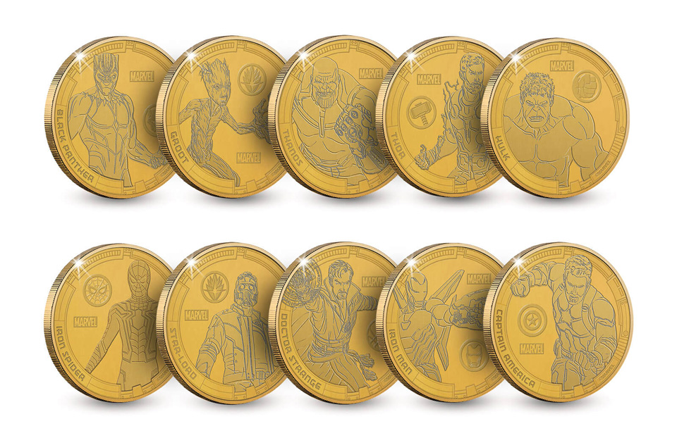 Description éditeur : Complétez votre collection de pièces commémoratives Marvel Infinity War avec cet ensemble complet de 10 pièces en métal massif de 38 mm, chacune décorée de vos personnages préférés du film au fini or antique. Emballé dans une capsule d’affichage en acrylique transparent avec son propre pack de présentation de cartes.