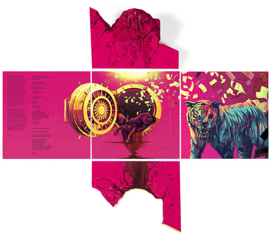 - pochette Gatefold qui se déplie en trois avec deux parties en haut et en bas avec le zombie