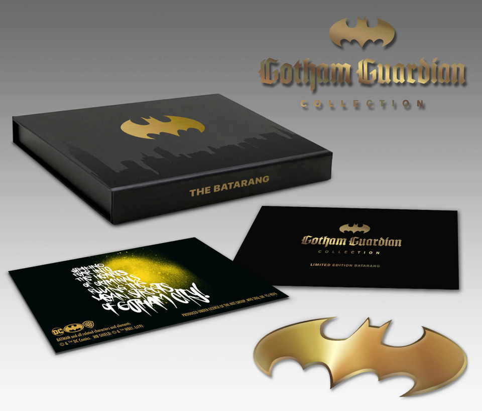 Description éditeur : Le Batarang en exclusivité Zavvi est une arme dorée représentant le symbole de Batman et célébrant son succès en tant que gardien de Gotham. C’est un objet de collection vraiment unique.