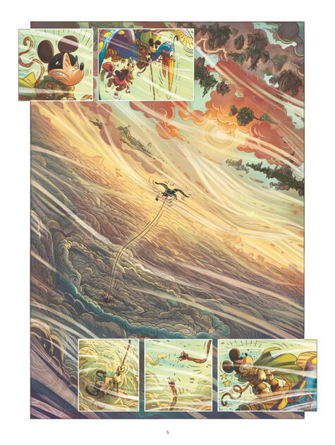 Synopsis : Dans un monde où chacun vit sur de précaires lopins de terre flottants pouvant à tout moment être emportés par de violentes tempêtes, Mickey, maître cordier, a pour mission de tenir en place ces fragiles îles volantes. Sans cesse sollicité, son travail lui évite de trop penser à la perte récente de son ami Dingo. Jamais Mickey n’a été aussi seul et démuni. Il doit pourtant affronter le tyrannique seigneur Fantôme, voleur des terres des plus pauvres. Pour cela, il se réconcilie à contrecœur avec Minnie, un peu trop occupée à vainement rechercher un continent chimérique et s’allie à Pat Hibulaire, leader d’une guilde indépendante aux agissements douteux, qui lui cache toutefois une bien belle surprise.