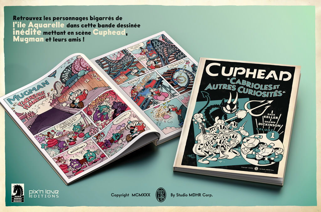 Description éditeur : La bande dessinée officielle ! Retrouvez les personnages bigarrés de l’île Aquarelle dans cette série d’histoires inédites mettant en scène Cuphead, Mugman et leurs amis ! Entre aventures palpitantes et péripéties inattendues, nos deux héros vous proposent plusieurs histoires courtes se déroulant dans le monde cartoonesque du fameux jeu vidéo. Une réinterprétation en bande dessinée fidèle au style rétro et artisanal de Cuphead, le titre qui a découragé certains journalistes dès son didacticiel ! Ne manquez pas la première bande dessinée de Cuphead et Mugman, écrite par Zack Keller et illustrée comme dans les années 1930 par Shawn Dickinson !
