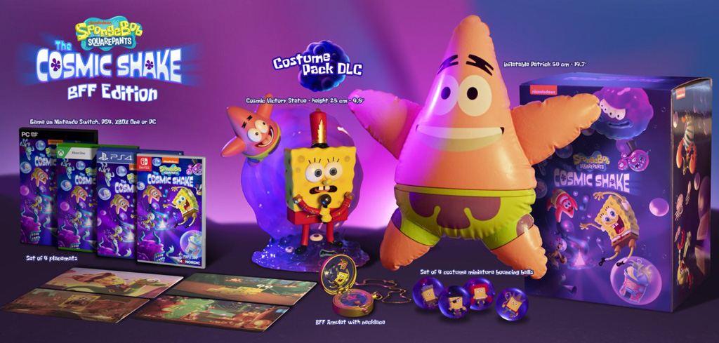 L'édition collector du nouveau jeu Bob L'éponge : The cosmic Shake avec entre autre un diorama et une bouée gonflable de Patrick est dispo en préco sur Micromania !