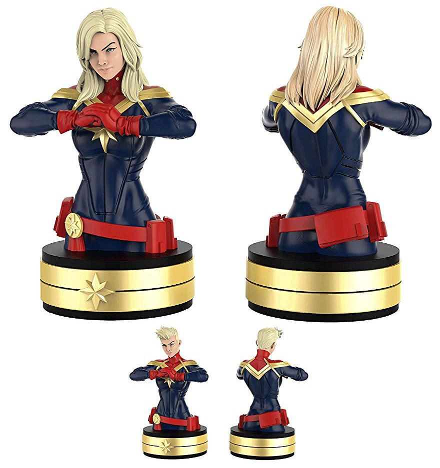 Mise à jour le 22 avril 2019 : Le fameux buste de Captain Marvel présent dans le coffret prestige dispo en exclu sur Amazon se dévoile enfin un peu plus en photos ! A noter également que ce dernier est bien réalisé en résine par le fabricant français SEMIC et qu’il sera aussi disponible à l’unité un peu plus tard pour 50€.