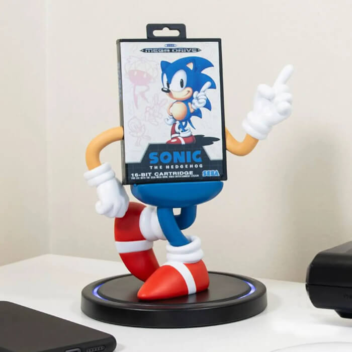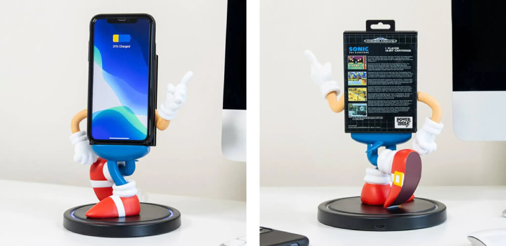 Description : Nul besoin de dépoussiérer votre SEGA Mega Drive pour un regain de nostalgie ! Admirez le jeu SEGA le plus emblématique de tous les temps, Sonic the Hedgehog, tout en chargeant votre appareil mobile sans fil ! Ajoutez à votre collection geek et emballez-vous cette impressionnante série de stations de recharge sans fil de collection de haute qualité, chacune présentant des designs inspirés des emballages rétro de vos films, jeux vidéo et émissions de télévision préférés.
