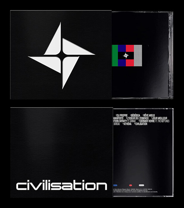 | Disque 1 1 - Shonen 2 - La Quête 3 - Du propre 4 - Bébéboa 5 - Rêve mieux 6 - Seul avec du monde autour 7 - Manifeste 8 - L’odeur de l’essence 9 - Jour meilleur 10 - Baise le monde 11 - Casseurs Flowters Infinity (feat. Gringe) 12 - Dernier verre (feat. The Neptunes) 13 - Ensemble (feat. Skread) 14 - Athéna 15 - Civilisation | Disque 2 1 - Intro Civilisation Perdue 2 - Les aventures de MiniSan 3 - Toujours perdu quand même 4 - Juste un dernier 5 - Ok… Super… 6 - Ah la France 7 - Point de rupture 8 - Nous contre le monde 9 - Évidemment (feat. Angèle) 10 - On a gagné |