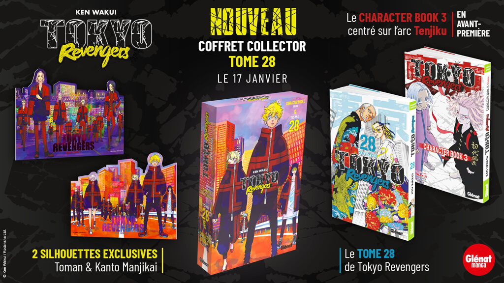 Glénat a enfin dévoilé le contenu du coffret collector du tome 28 de Tokyo Revengers prévu le mois prochain (résumé des précommandes juste en dessous)