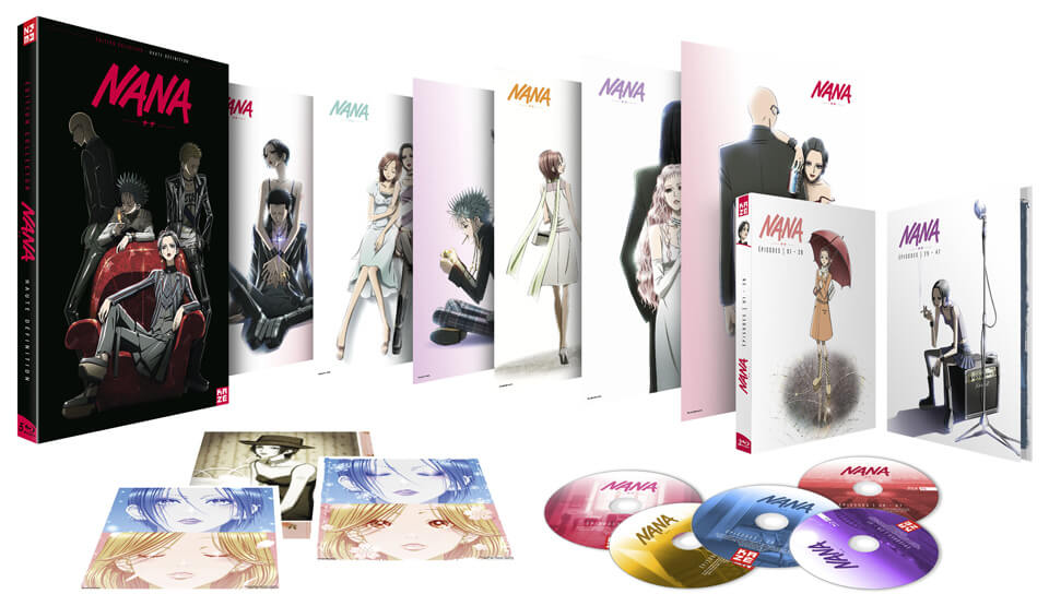 Description éditeur : L’intégrale de l’anime Nana revient dans une édition collector et pour la première fois en Blu-ray, une exclusivité mondiale signée Kazé. Pour rappel, c’est l’histoire de Nana Osaki et Nana Komatsu qui ont toutes deux le même prénom, le même âge, elles montent à Tokyo dans l’espoir secret d’y trouver l’amour et finissent locatrices d’un même appartement. Un destin commun pour deux destinées en revanche, bien opposées. Quand l’une rêve de triomphe pour son groupe de rock les BlackStones, l’autre ne recherche qu’un mari parfait pour fonder un foyer.