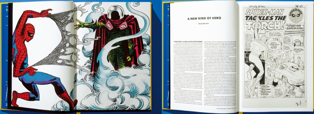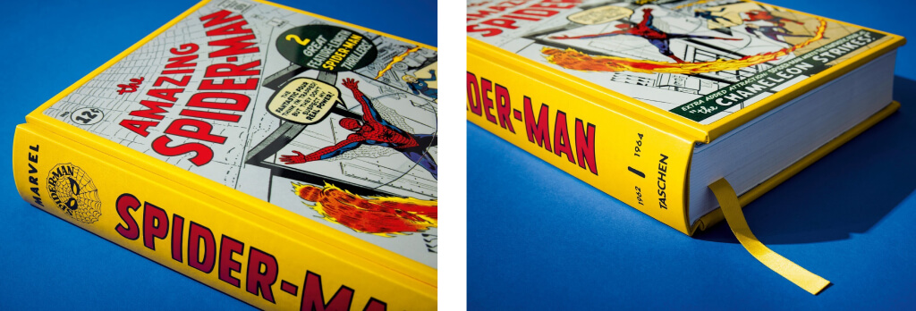 Description éditeur : Remontez le temps et assistez à la création du plus célèbre tisseur de toiles au monde par les deux légendes des comics Stan Lee et Steve Ditko, qui avec lui ont redéfini le héros moderne. Ce volume format Hulk, un rêve de collectionneur, réunit les 21 premières aventures de Spiderman publiées entre 1962 et 1964, photographiées avec soin à partir des exemplaires les mieux conservés de ces comics très recherchés: un hommage artistique à l’adolescent superhéros pour ce volume inaugural de la collection Marvel Comics Library de TASCHEN.