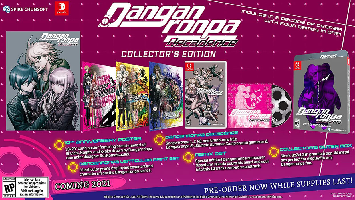 Pour rappel, le collector de Danganronpa Decadence avec les principaux jeux de la série + la BO sur CD et un boitier métal sort officiellement aujourd'hui !