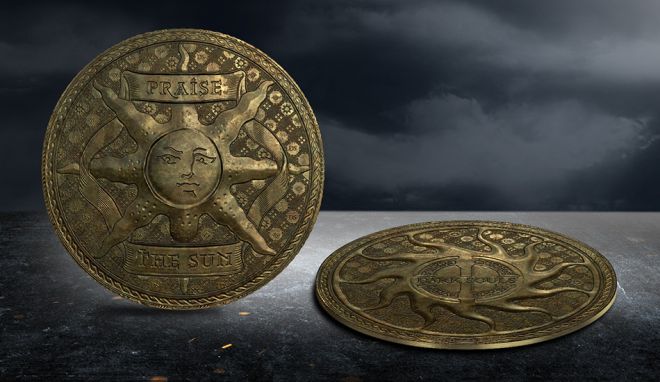 Description éditeur : C’est le Graal du Guerrier Solaire. Cet emblème officiel de Dark Souls est la fois joyau et médaille, une récompense méritée pour les véritables adeptes du Soleil. Cette médaille de Dark Souls vous impressionnera par ses détails et sa finition exemplaire ; il s’agit d’une pièce de collection 100 % bronze pur. Faites honneur aux origines de la célèbre série Dark Souls avec l’emblème Loué soit le Soleil.