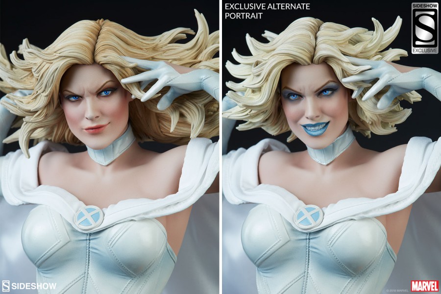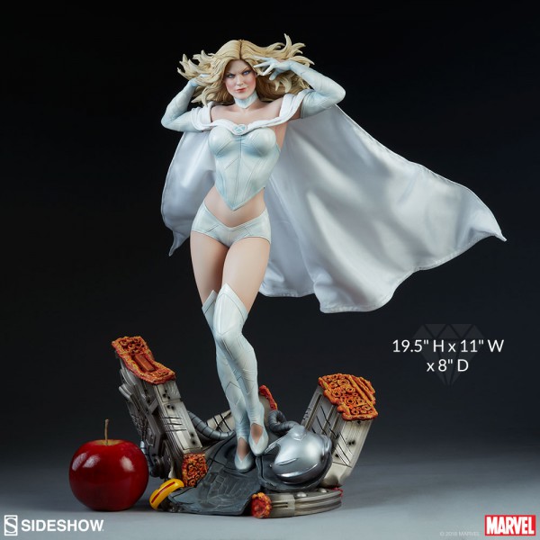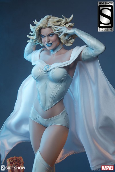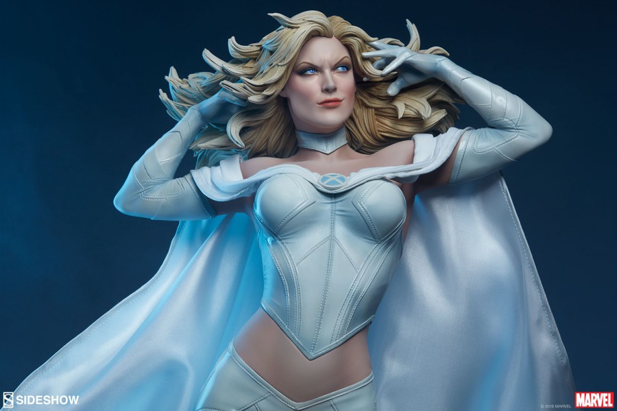 Description éditeur : Capturée dans un moment d’intense concentration télépathique, la figurine Emma Frost Premium Format est élégante dans sa cape en tissu blanc fluide, sur mesure avec un câblage interne pour permettre de la modeler. Emma Frost porte un costume blanc sculpté avec des gants et des bottes, tous détaillés avec des textures réalistes de couture et de laçage avec son motif de diamant. Ses cheveux blonds circulent autour de son beau portrait alors qu’elle concentre ses immenses pouvoirs mentaux sur l’arrêt de la menace.