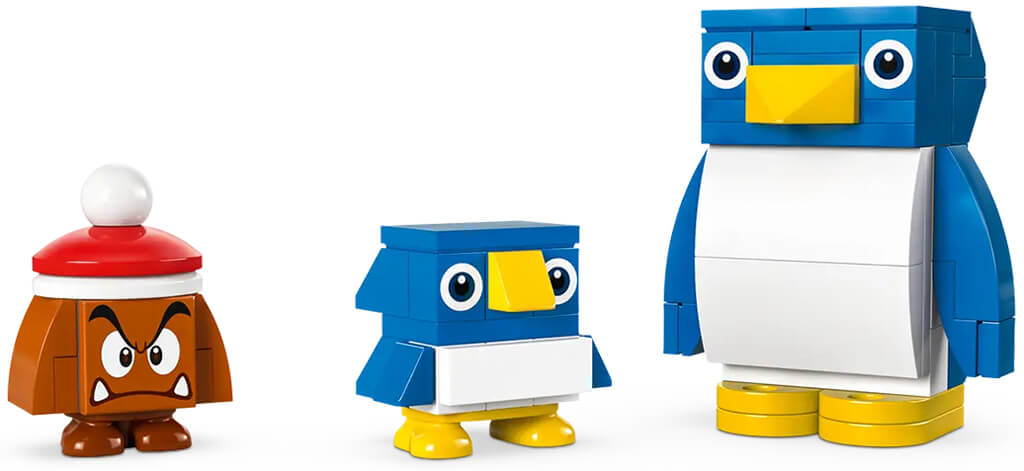 – Inclut 3 personnages LEGO Super Mario – Un pingouin, un petit pingouin et un Goomba doté d’un bonnet d’hiver en briques LEGO, ainsi que 2 poissons