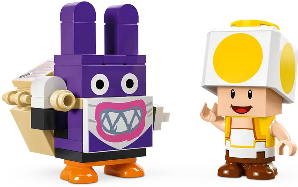 – Inclut Les figurines de Toad jaune et Carottin peuvent saisir des accessoires dans leurs mains et Carottin possède un sac à construire