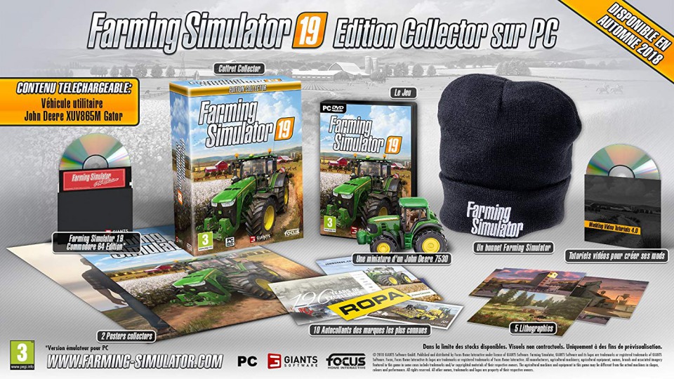 Mise à jour le 26 octobre 2018 : Petite baisse de prix pour l’édition collector de Farming Simulator 19 disponible en pré-commande à moins de 35€ sur Auchan au lieu de 50€ !