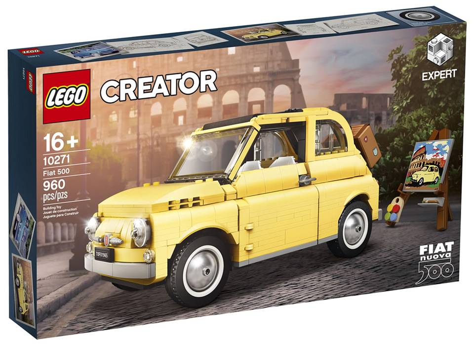 Description éditeur : Ce modèle de voiture LEGO Creator Expert Fiat 500 (10271) recrée une véritable icône du design automobile classique. Les adolescents et les fans adultes apprécieront l’expérience de construction exigeante proposée par ce modèle basé sur la légendaire Fiat 500F de la fin des années 60, ainsi que tous les détails authentiques en briques LEGO, tels que le porte-bagages avec la valise, l’intérieur détaillé, le toit décapotable, ainsi que les portes, le capot et le hayon qui s’ouvrent. Pour compléter le thème italien, ce modèle de voiture classique comprend également un chevalet pliable avec un pinceau, une palette et un petit tableau représentant la voiture devant le célèbre Colisée de Rome.