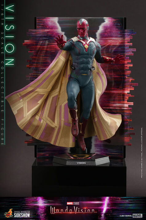 – Tête sculptée nouvellement peinte avec une ressemblance authentique et détaillée de Vision