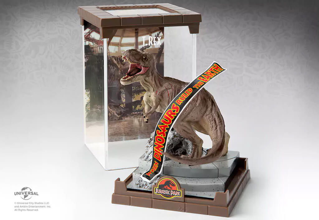 Description éditeur : Reviviez les scènes cultes du film Jurassic Park avec notre nouvelle gamme Noble collection ! Le Tyrannosaure Rex est un dinosaure emblématique de l'univers de Jurassic Park. C'est l'un des plus grand carnivores de son épiques. Il s'enfuit lors du sabotage du parc et sème la terreur partout où il passe.