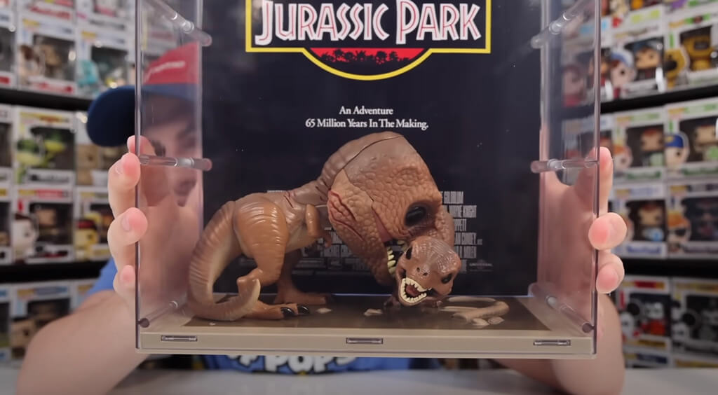- Le diorama Funko Pop du T-Rex avec un vélociraptor
