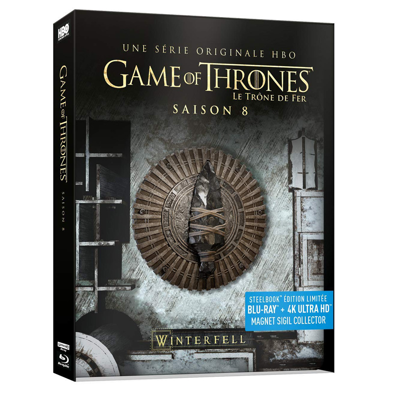 Mise à jour le 26 juin : En plus du coffret intégral, le steelbook 2D+4K de la saison 8 de Game of Thrones se dévoile également avec un premier visuel du boitier et du magnet.