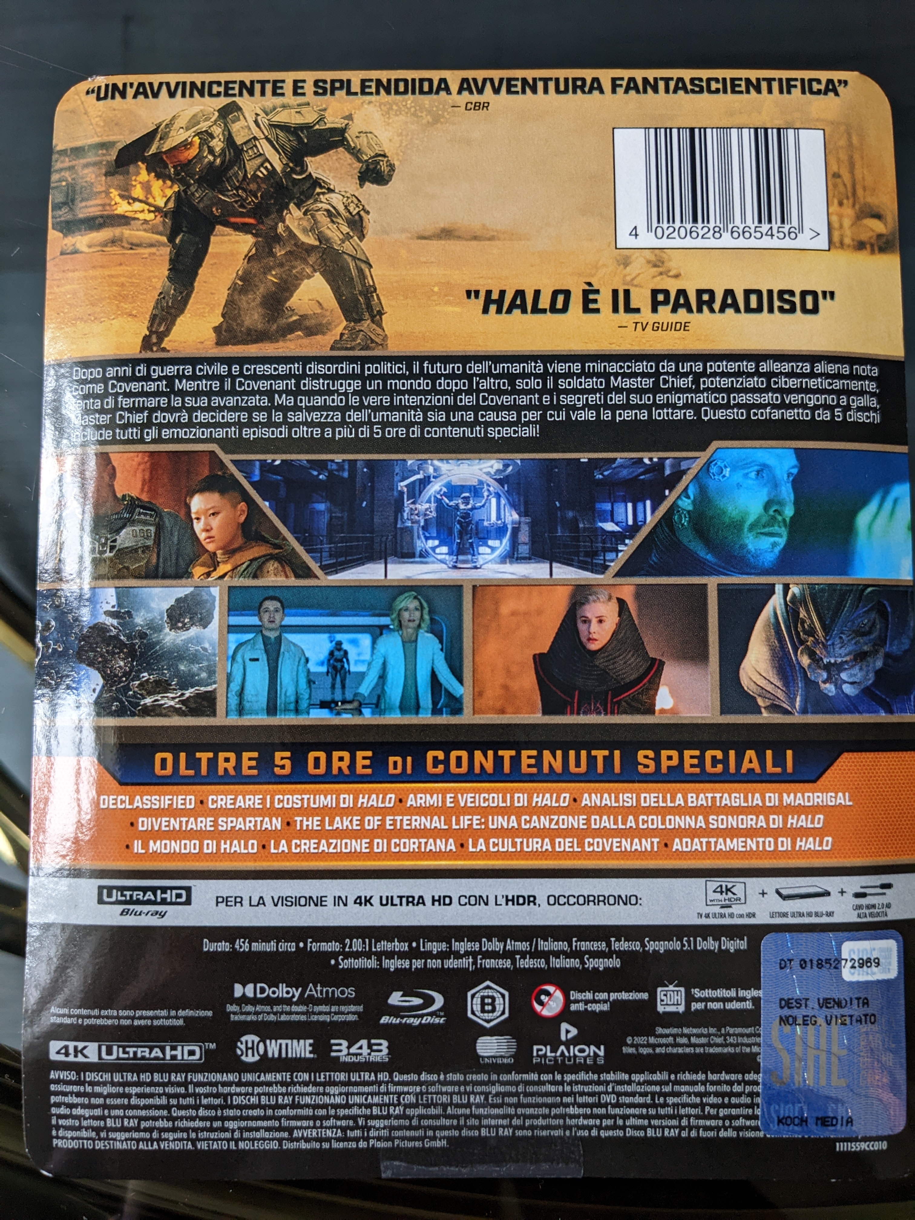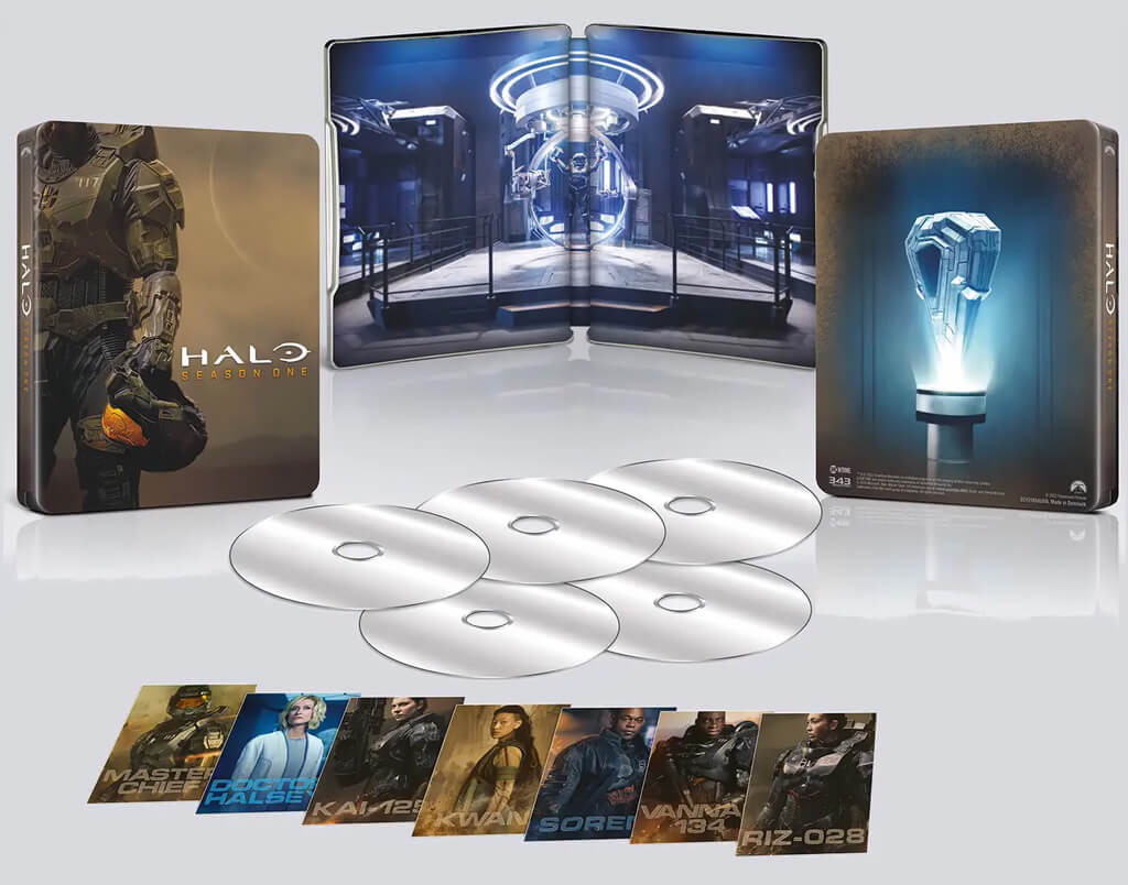 - Les 9 épisodes de la première saison de la série Halo en blu-ray 2D+4K (5 disques)