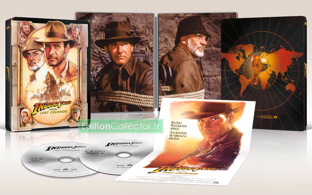 Prévu mercredi prochain, le steelbook d'Indiana Jones et la Dernière Croisade en blu-ray 2D+4K est maintenant aussi de retour en pré-commande sur Amazon et Fnac !