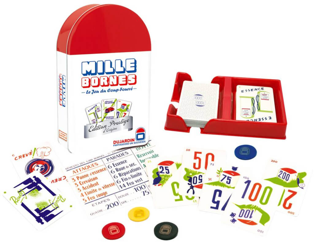 Description éditeur : Dujardin est fier de vous présenter le 1 000 Bornes Edition Prestige, fidèle à l'édition d'origine, à l'occasion du 55ème anniversaire du jeu !