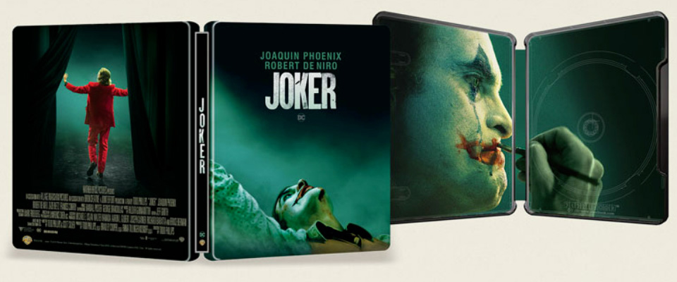 Visuels parfaits qui mettent en avant deux moments où Arthur bascule en Joker : visuel de la danse dans les wc après les meurtres du métro et l’entrée en scène du joker .. et cohérence du vert sur l’ambiance du steelbook. Parfait !