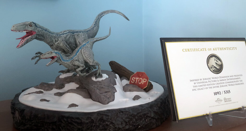 Il y a une vidéo sur Youtube. Tapez jurassic world 3 blu-ray. Statuette horrible, les gueules des Raptor bâclé, les yeux, les jointures, décor etc...... Je crois que vais annuler ma prèco