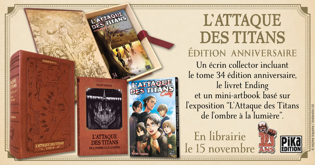 Pour rappel, l'édition anniversaire du tome 34 du manga L'Attaque des Titans sort officiellement aujourd'hui ^^
