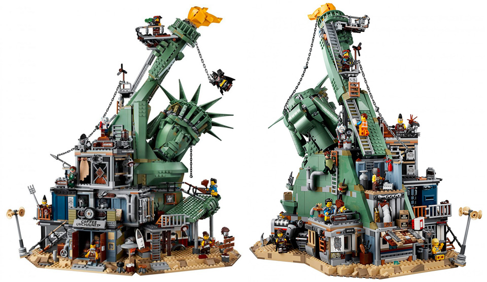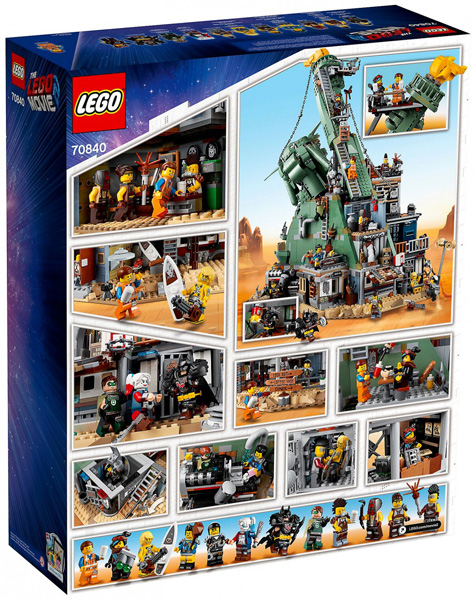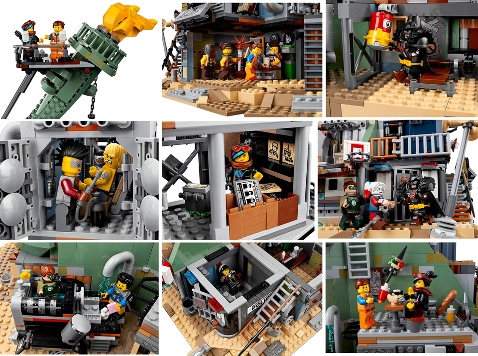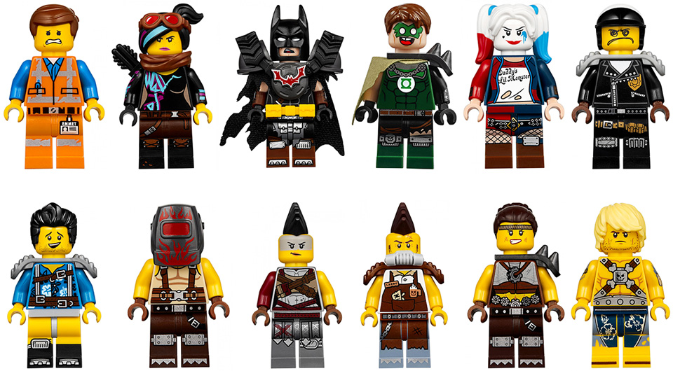 – 12 nouvelles minifigs : Emmet, Lucy, Batman, Flic griffonnant, Harley Quinn, Green Lantern, Le mec de « Où est mon pantalon ? » Larry le Barista, Dave la tronçonneuse, Mo-Hawk, Roxxi et Fuse, plus une figurine de rat
