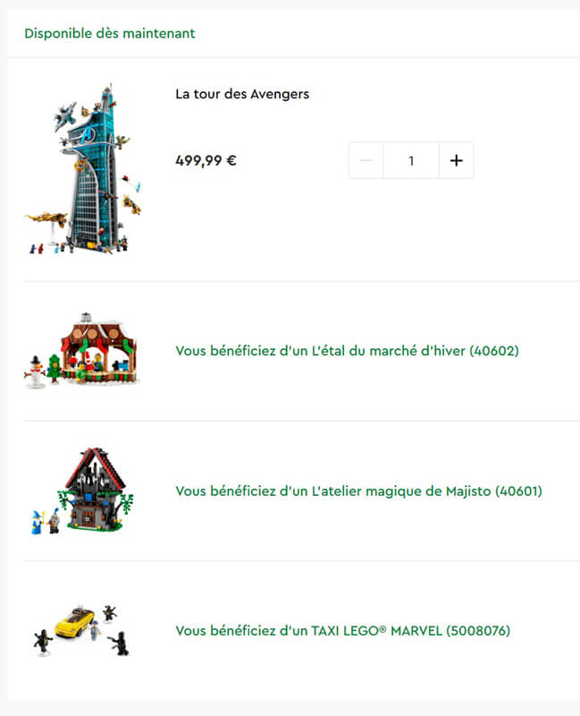 Pour rappel, l'énorme réplique LEGO de la tour Avengers de 90cm de haut composé de +5200 pièces avec pas moins de 31 figurines est enfin dispo en stock en exclu sur la boutique officielle avec 3 petits set offerts en bonus (ils sont ajoutés automatiquement au panier)
