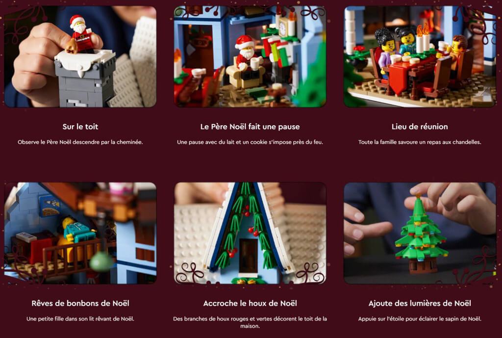Description éditeur : Si vous rêvez de passer une merveilleuse nuit de Noël, plongez dans la magie de Noël avec le set LEGO La visite du Père Noël (10293). Les adultes et les familles peuvent savourer des moments de qualité en réalisant un projet agréable. Construisez cette maison de Noël travaillée et explorez tous ses jolis détails avant de l’exposer.