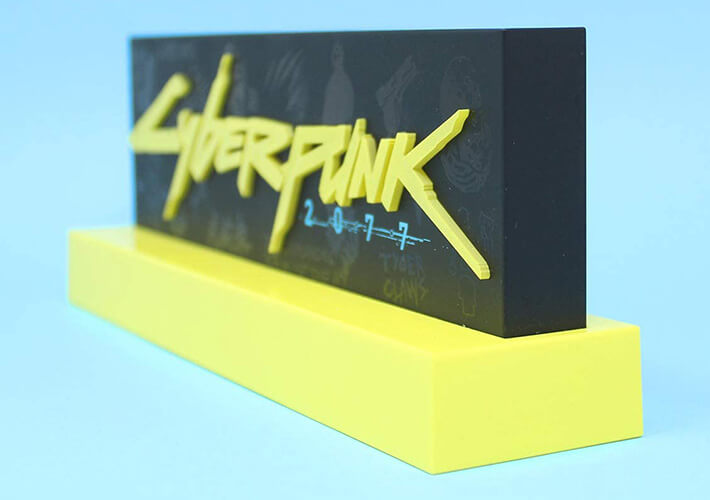Description éditeur : Des couleurs à la fois sombres et fluo, un logo en graffiti, tout ce qui représente l’originalité de Cyberpunk 2077 créé par CD Projekt. Faites immerger l’univers dystopique du jeu vidéo le plus attendu dans votre intérieur à travers cette lampe aux allures modernes. Cette lampe Cyberpunk plongera votre intérieur dans l’atmosphère du jeu, de quoi accentuer l’immersion durant vos heures de gaming.