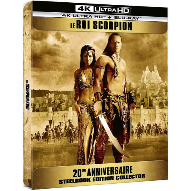 Le steelbook 20ème anniversaire du Roi Scorpion en blu-ray 2D+4K se dévoile maintenant sous tous les angles !