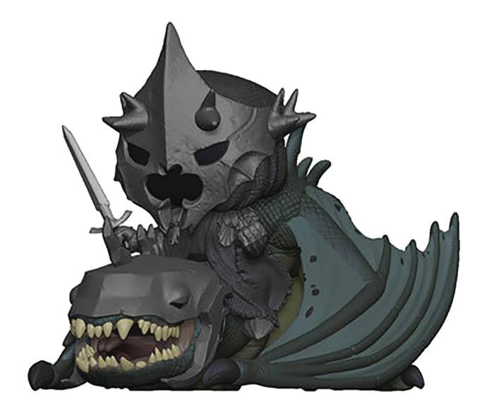 Description éditeur : Tiré du Seigneur Des Anneaux: Le Retour Du Roi, Le Roi Sorcier D’Angmar est le chef des Nazgul et le plus terrible des Spectres De L’Anneau, il est représenté par Funko sur sa créature ailée féroce (Fellbeast ) ! C’est une Figurine Pop! Ride exceptionnelle qui complètera toute collection Funko Seigneur Des Anneaux !