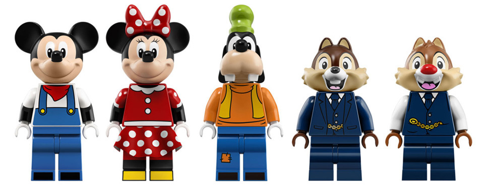 – 5 minifigures LEGO : Mickey Mouse, Minnie, Tic, Tac et Dingo