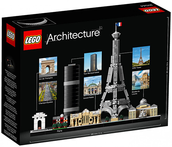 Description éditeur : Réunissez des monuments emblématiques de Paris avec ce magnifique modèle de Paris. La Collection Skyline LEGO Architecture 21044 comprend l’Arc de Triomphe, les Champs-Elysées, la Tour Montparnasse, le Grand Palais, la Tour Eiffel et le Louvre et des zones d’herbe et d’arbres et un écriteau décoratif de Paris. Ce modèle a été conçu pour offrir une expérience de construction agréable et relaxante à tous les passionnés d’architecture, de voyage, d’histoire et de design, et formera une magnifique pièce à exposer à la maison ou au bureau. Chaque ensemble de skyline est à l’échelle pour donner une idée précise de la taille comparative de chaque structure, avec des couleurs réalistes.