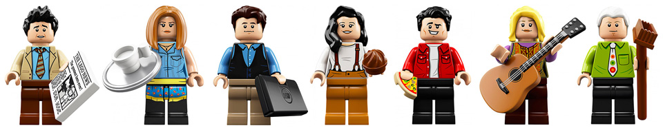 – 7 minifigures : Ross Geller, Rachel Green, Chandler Bing, Monica Geller, Joey Tribbiani, Phoebe Buffay et Gunther