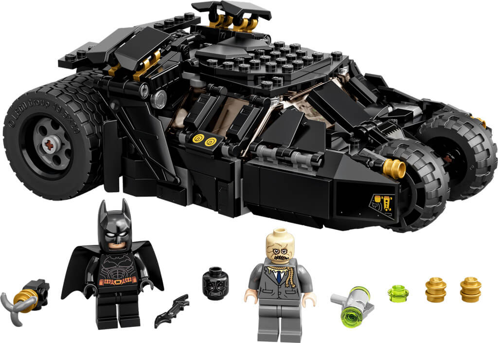 Description éditeur : La Batmobile Tumbler de la trilogie The Dark Knight est l’un des véhicules de combat les plus célèbres de l’histoire du cinéma. Elle dispose d’un toit ouvrant qui permet d’accéder aux sièges du pilote et du passager, ainsi qu’au tableau de bord. L’avant du véhicule est équipé de 2 fusils à tenons. Il y a même un endroit où ranger le Batarang 2 figurines sont incluses : Batman avec un Batarang, un fusil à grappin et une tête « cauchemar » alternative, ainsi que l’Épouvantail, armé d’un fusil à tenons et d’un bidon de gaz de peur toxique.
