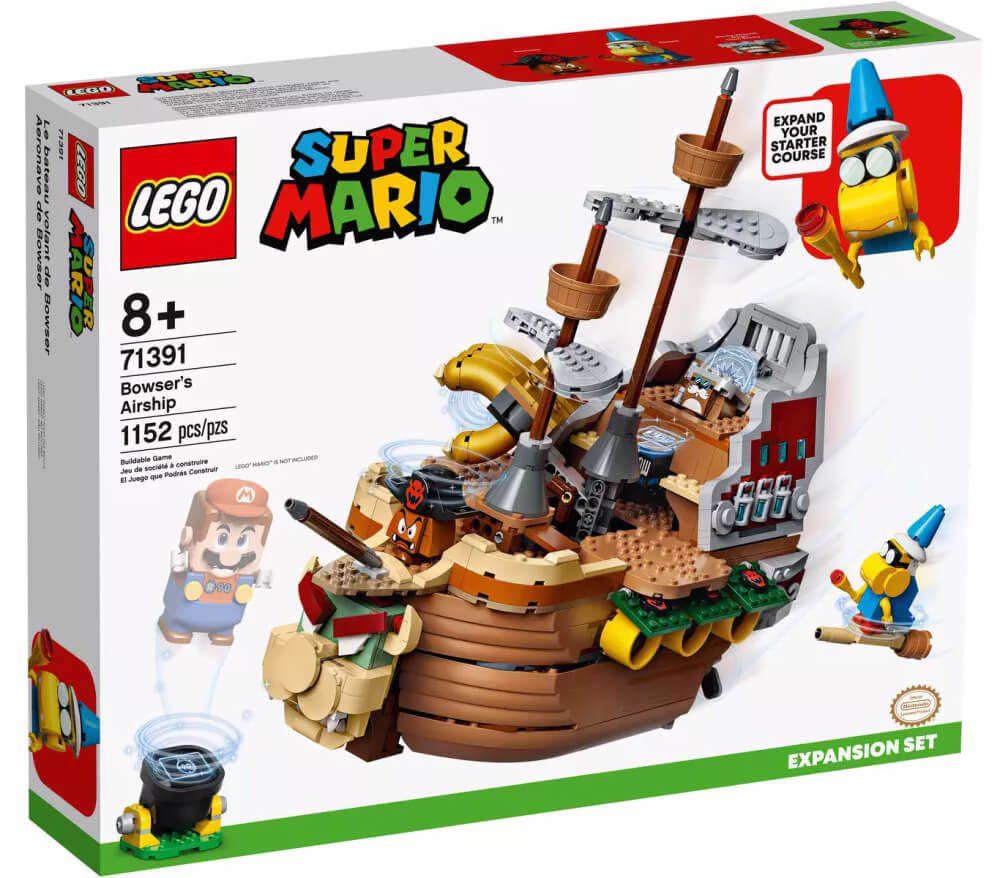 Description éditeur : Les enfants peuvent construire la forteresse volante de Bowser pour décorer leur chambre ou enrichir leur univers LEGO Super Mario et l’utiliseront en mode « vol » ou dépliée en mode « parcours ». Des défis attendent les joueurs, tels que le bras robotique de Bowser et une brique d’action POW pour faire sortir une Torti Taupe de sa cachette (Un Pack de Démarrage 71360 ou 71387 est nécessaire pour jouer).