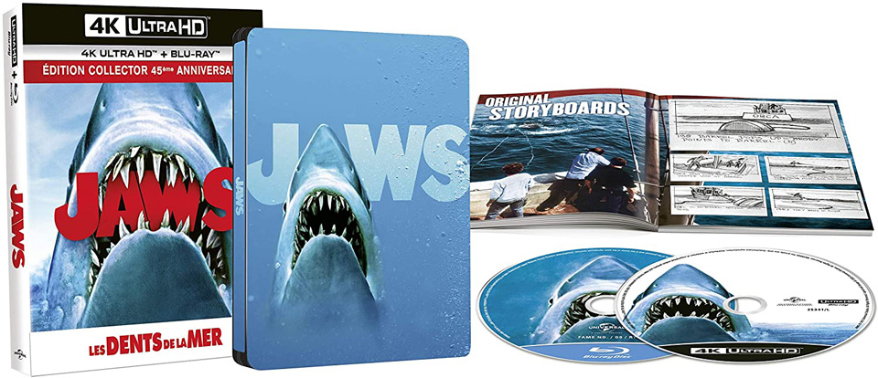 Mise à jour le 17 avril 2020 : L’édition collector 45ème anniversaire des Dents de la Mer se dévoile enfin avec au programme un nouveau steelbook blu-ray 2D+4K et en bonus un fourreau lenticulaire ainsi qu’un livret exclusif de 44 pages !