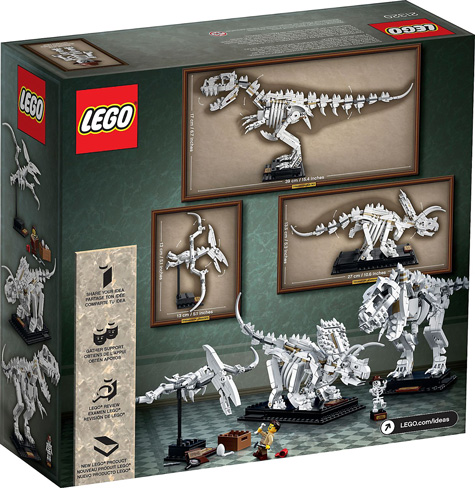– un livret contenant des instructions de montage claires, des informations passionnantes sur le Tyrannosaurus rex, le tricératops et le ptéranodon, ainsi que des informations sur le fan créateur et le designer LEGO à l’origine de cet incroyable modèle.