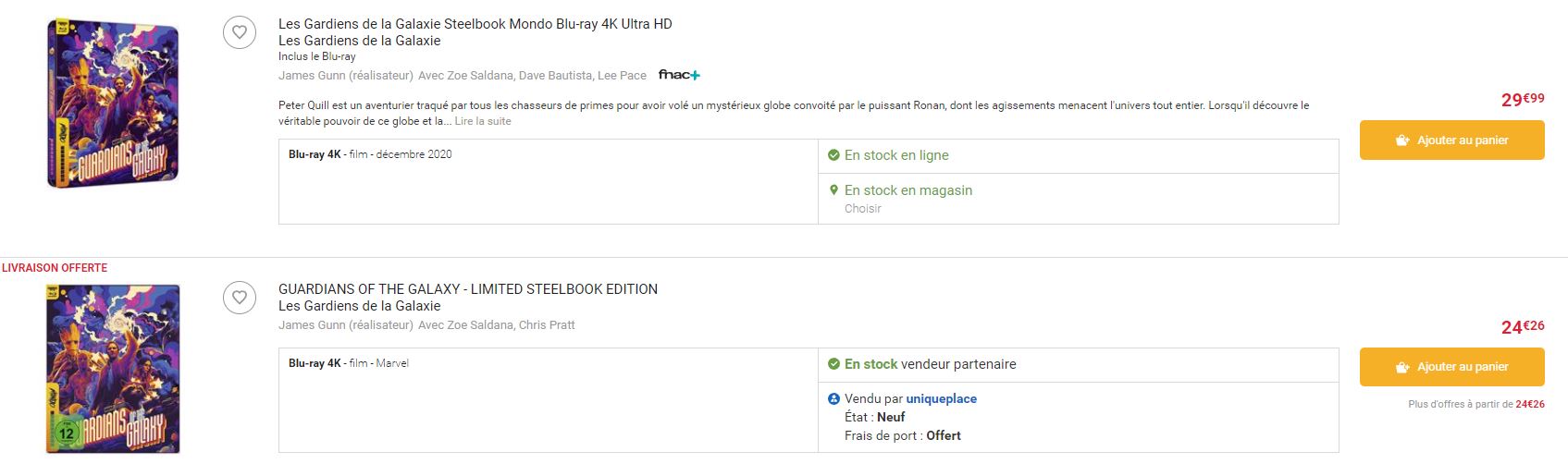 Le steelbook Mondo X des Gardiens de la Galaxie est maintenant aussi disponible en pré-commande à 30€ sur la Fnac tout comme cinq autres films du MCU (+d’info sur l’article du blog) !