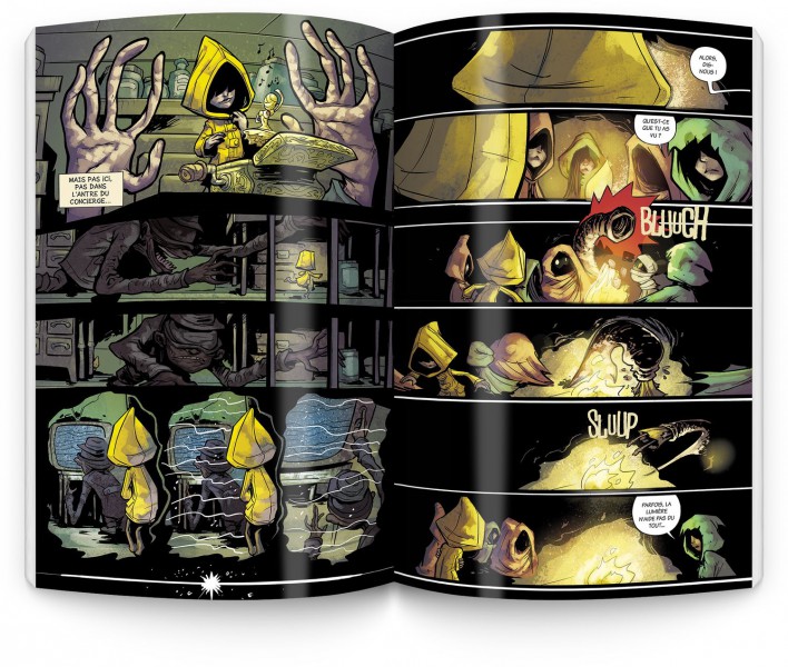Description éditeur : Six, l’héroïne en imperméable jaune du jeu vidéo Little Nightmares, rencontre, dans l’Antre, des enfants perdus qui lui racontent leur terrible histoire. Le résultat prend la forme de deux récits fantastiques inédits, intégralement en version française, qui prolongent l’expérience vidéoludique et permettent d’en apprendre davantage sur l’univers de Little Nightmares.