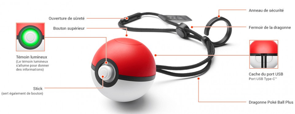 Description éditeur : Au lieu d’utiliser le Joy-Con, vous pouvez vous servir de la Poké Ball Plus pour naviguer dans les menus de ces jeux, explorer le monde et combattre avec des Pokémon. La Poké Ball Plus offre aussi des commandes par mouvements, lorsqu’un Pokémon sauvage apparaît vous pouvez l’utiliser comme si vous lanciez une Poké Balle pour l’attraper ! Quand vous attrapez un Pokémon vous verrez non seulement la Poké Ball Plus s’illuminer, mais elle vibrera et vous pourrez aussi entendre le Pokémon à l’intérieur comme si vous attrapiez un Pokémon dans le monde réel.