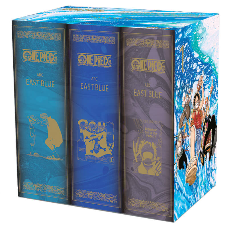 Langue : Français Editeur : Glénat Broché : 2304 pages en tout / couverture souple Format : 11 x 18cm Détails : - Les douze premiers tomes de One Piece (les mêmes vendus à l'unité) - correspond à l'intégrale de l'arc East Blue - le tout dans un grand fourreau imitant trois gros livres Description éditeur : Dans ce coffret, découvrez l'arc East Blue dans les douze premiers tomes de One Piece et commencez à naviguer avec Luffy à travers les mers ! Ce beau coffret sera un cadeau idéal pour toute personne souhaitant démarrer la lecture de cette série incontournable. Et pour les aficionados qui possèdent déjà la série en intégralité, une version vide du coffret est également prévue dans les mois qui suivent !