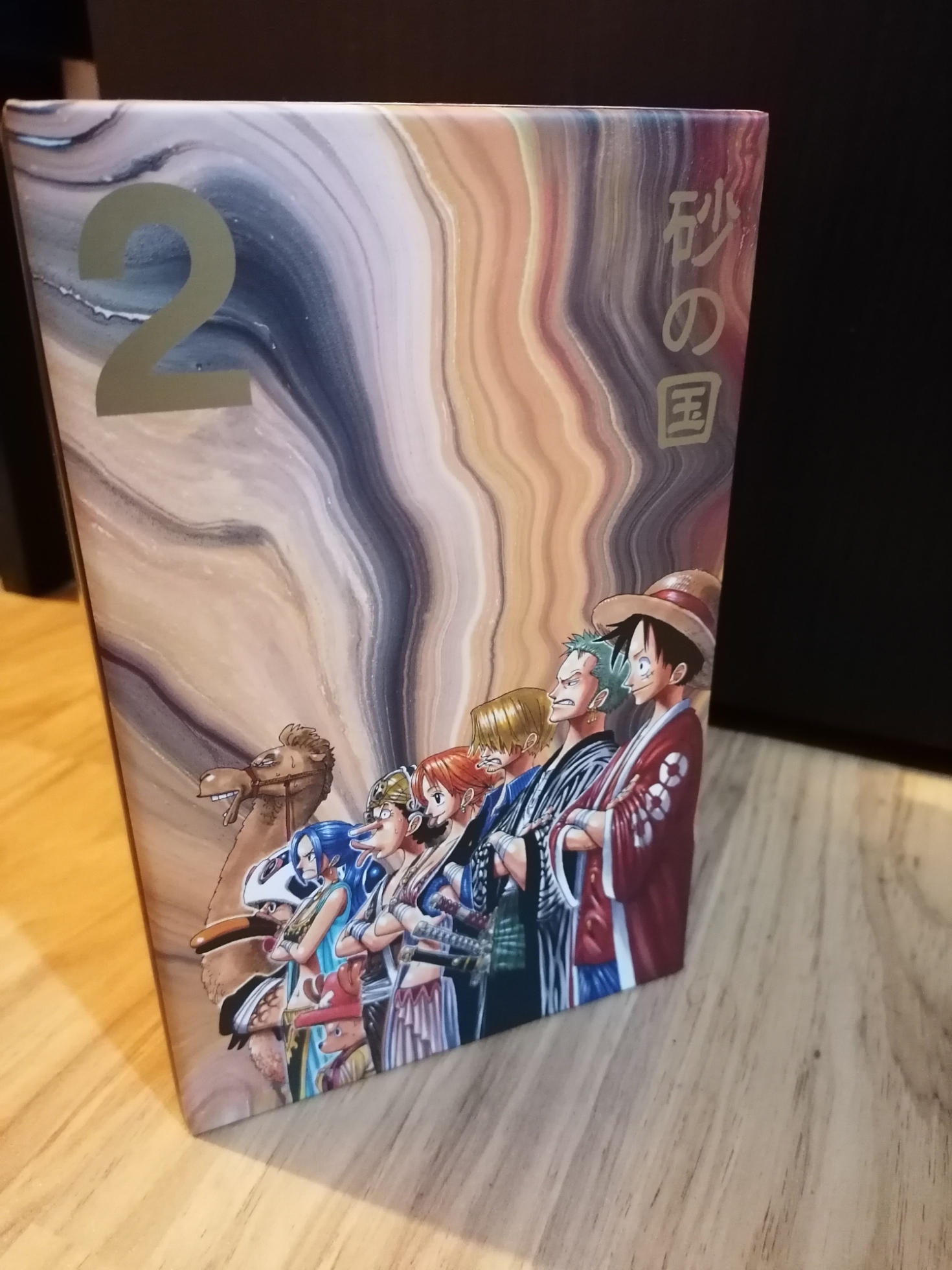Je peux déjà vous montrez le coffret pour l'arc d'Alabasta. J'avais commandé la version japonaise (sauf que le manga français fait un demi-millimètre de plus en hauteur, et ne rentre pas dedans)