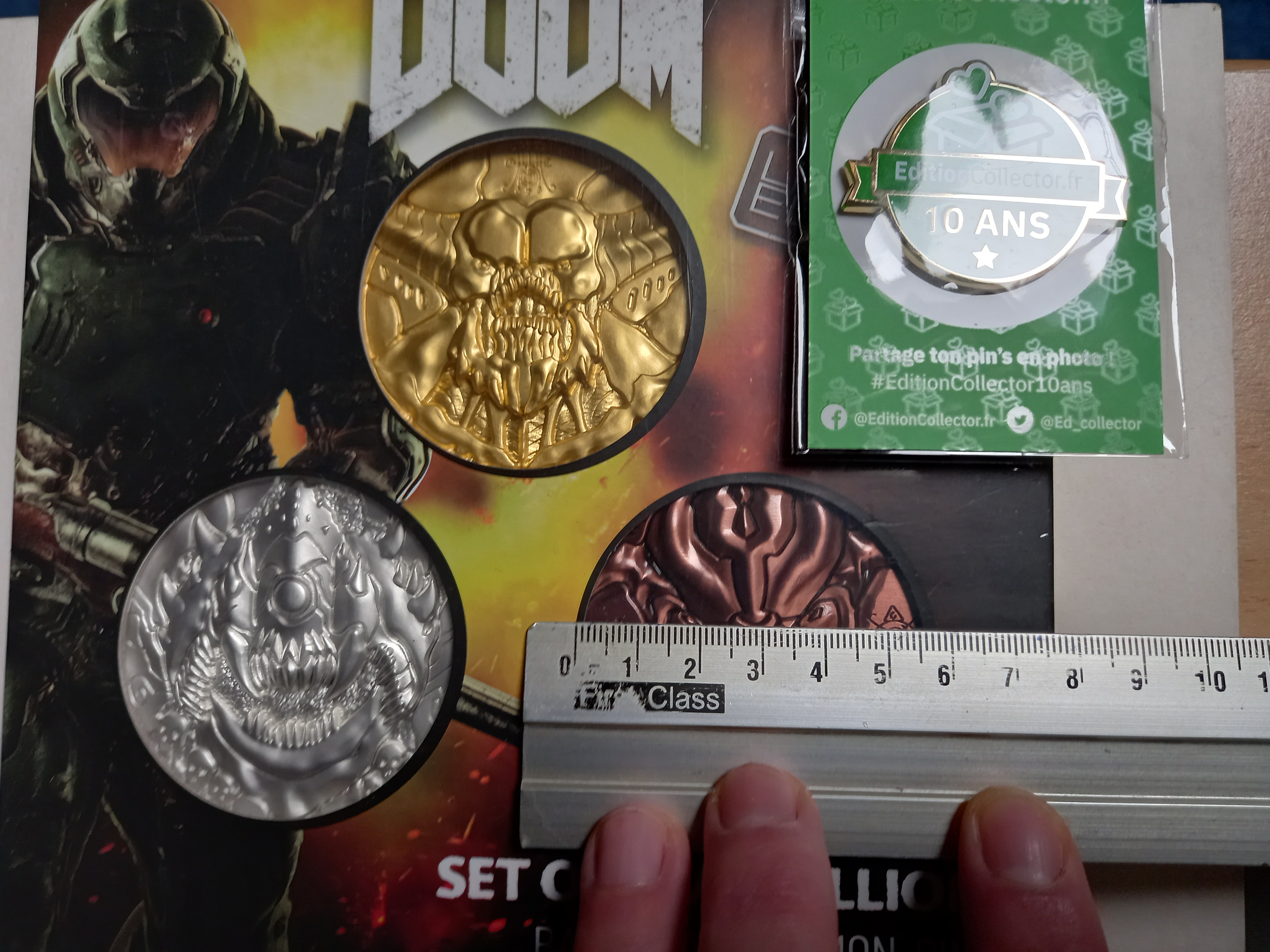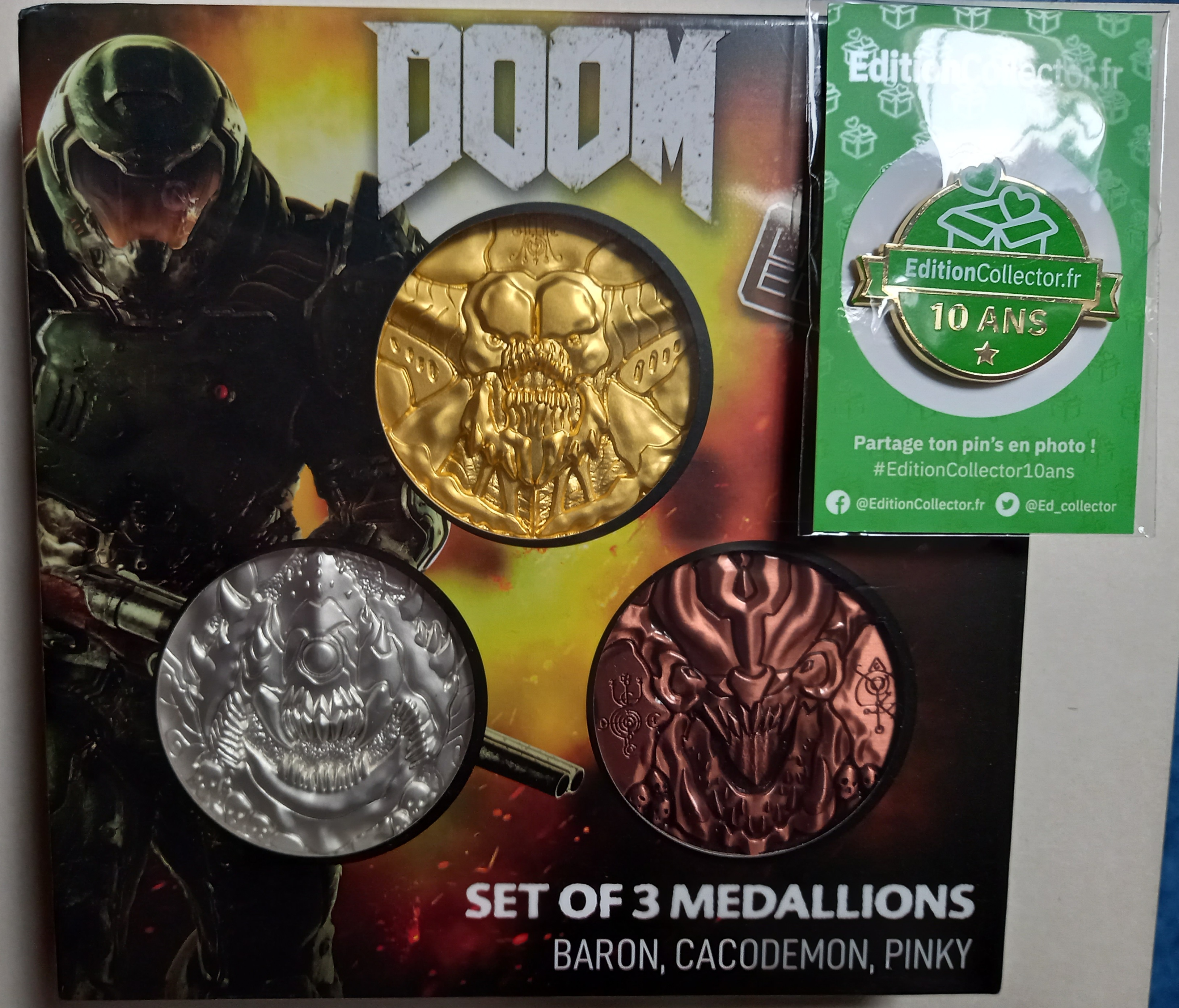 - Comprend 3 médaillons à collectionner (le baron de l'enfer, Cacodemon et Pinky)