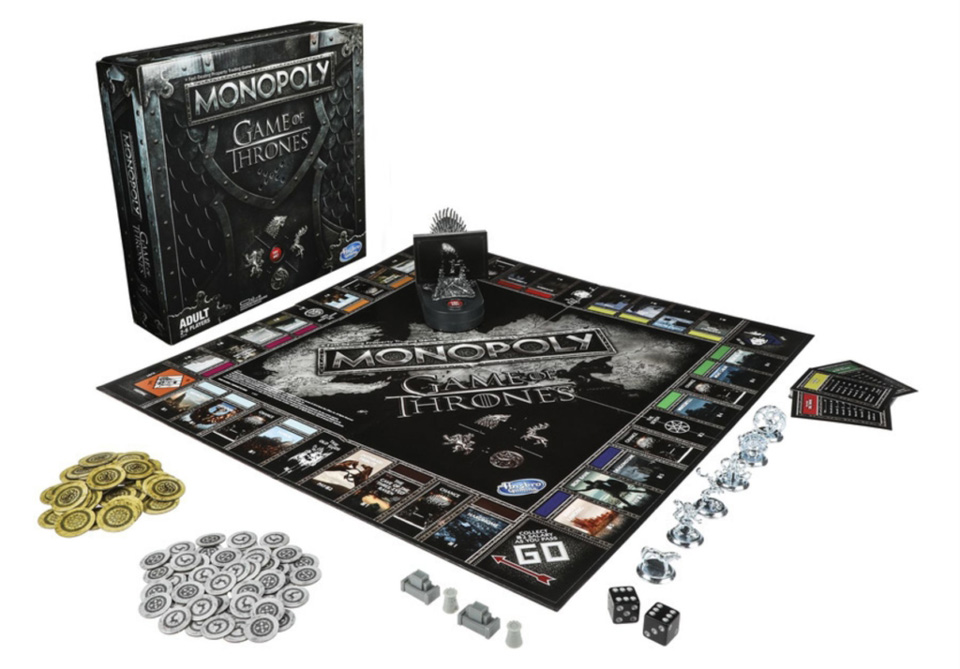 Description éditeur : Faites le tour du tableau en achetant vos emplacements préférés de la série Game of Thrones. Accumuler et payer des pièces pour construire la richesse de votre maison. Les cartes Chance sont assises sur le trône de fer et font basculer le jeu rapidement en votre faveur ou vous écrasent toutes en même temps, tout comme ces rebondissements délirants de la série !