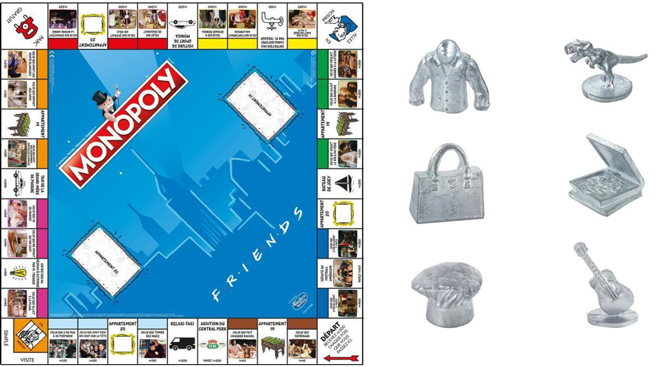 – 6 pions en métal (Phoebe est la guitare, Monica la toque de chef, Rachel le sac à main, Ross le dinosaure, Chandler un chandail et Joey une pizza)